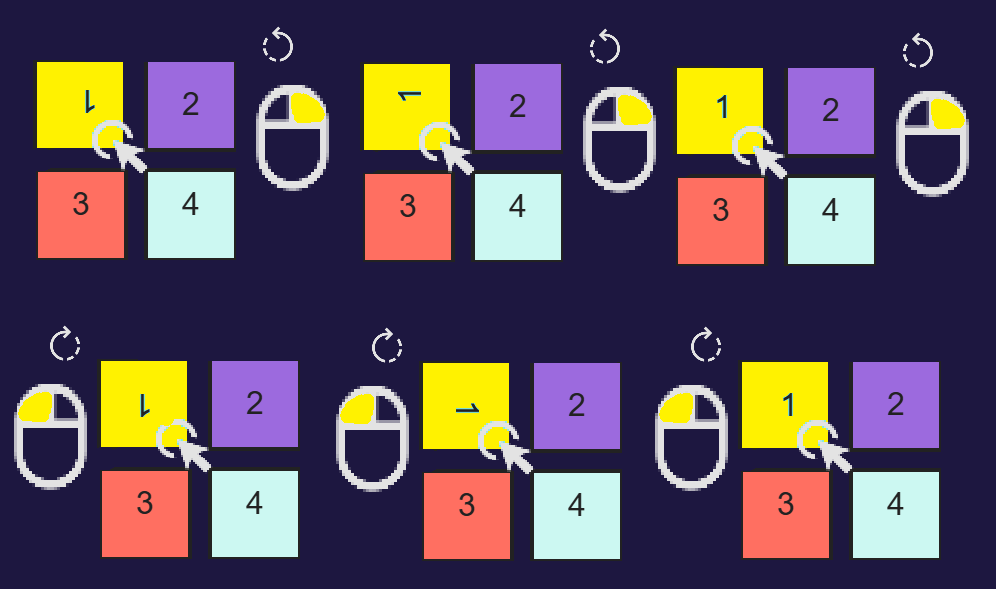"Your goal is to reconstruct an image by rotating its four parts until they are all correctly aligned."